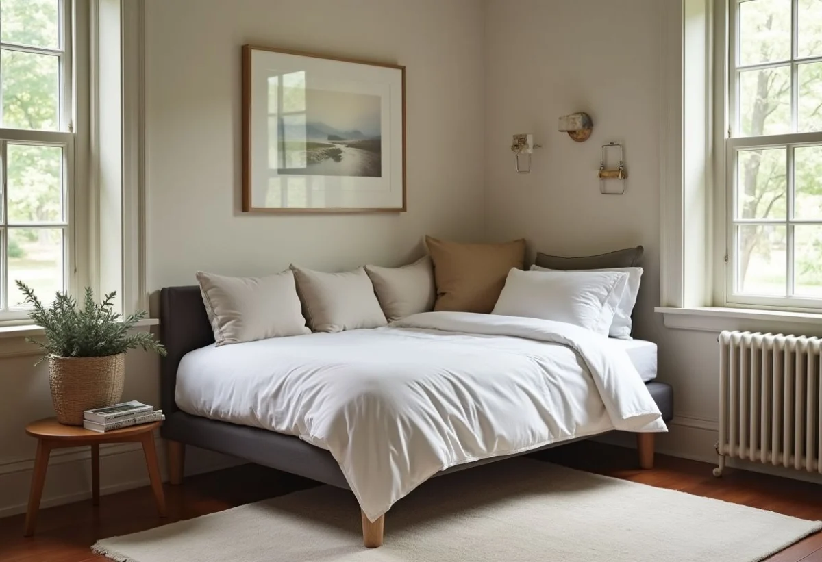 Considérez la disposition des meubles existants pour vous assurer que le lit banquette ne gênera pas la circulation, que ce soit en mode canapé ou en mode lit. Cela permettra de maximiser le gain place pour aménager chambre ami en toute sérénité.